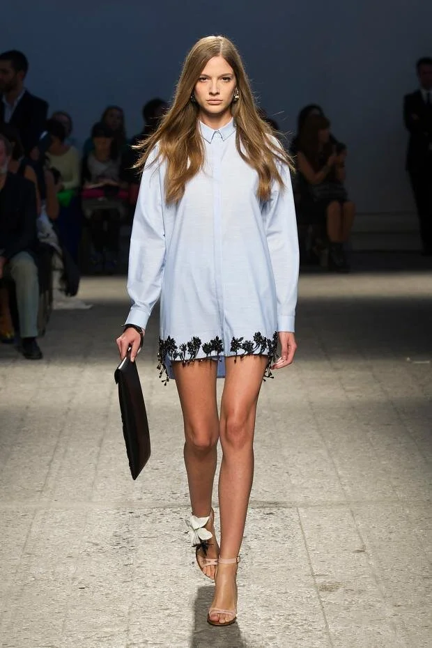 Camicie dal taglio maschile, ma impreziosite da applicazioni di jais e pietre che oscillano ad ogni più piccolo movimento, pizzi super femminili, cristalli, perline e paillettes che illuminano blazer, gonne ed abitini, questi i protagonisti della sfilataN °21 firmata Alessandro Dell'Acqua per la prossima primavera-estate 2014. Intagli, trasparenze e giochi vedo-non-vedo, per capi preziosi, ma anche essenziali, come le giacche di pelle taglio al vivo. Accessori e dettagli non trascurabili: orchidee in vernice applicate solo su uno dei dei due sandali dai tacchi vertiginosi, inedite ciabatte rasoterra impreziosite da inserti in pelle di pitone e pietre dure, motivi floreali composti da perline brillanti cucite su corti gambaletti...